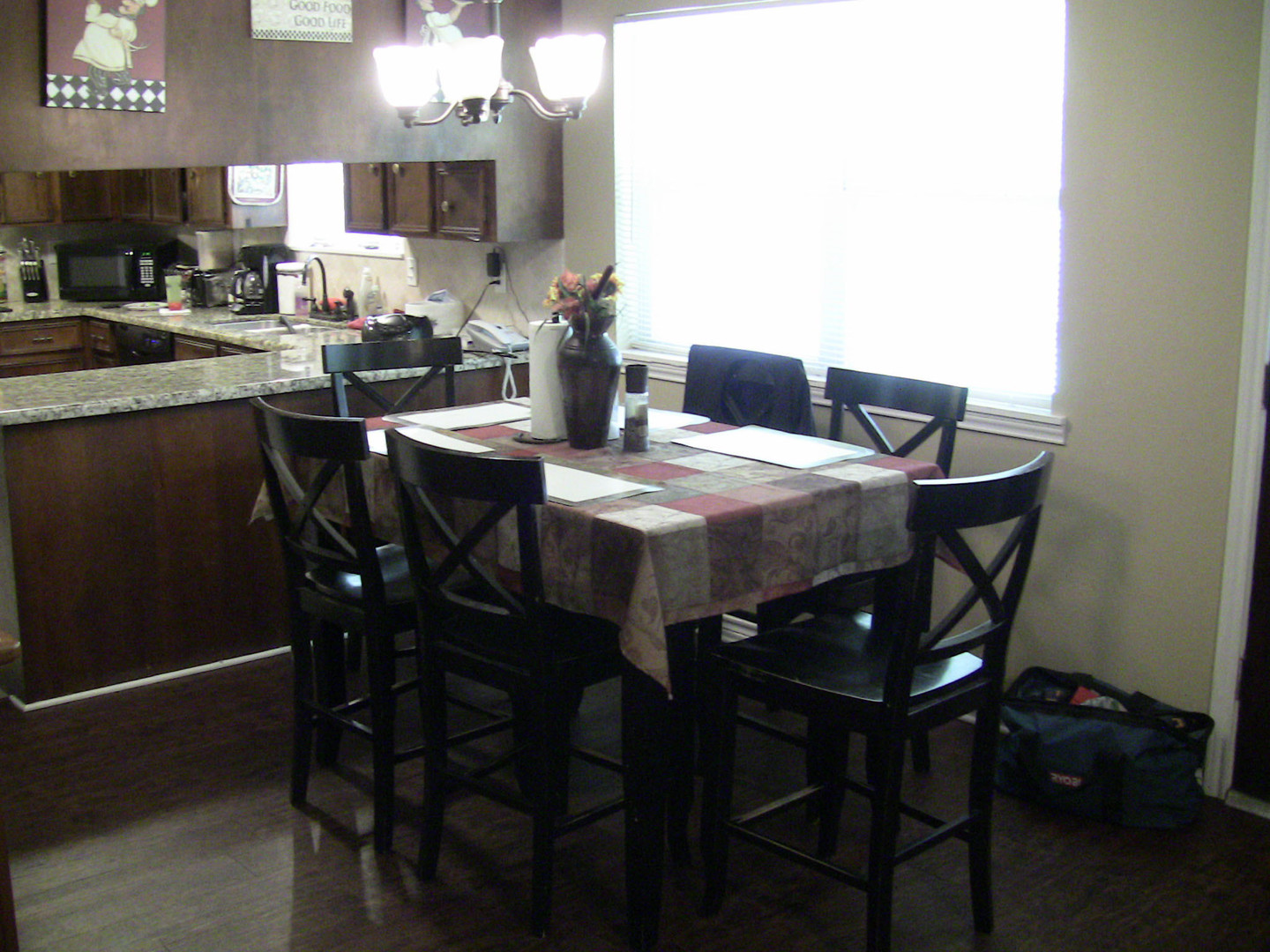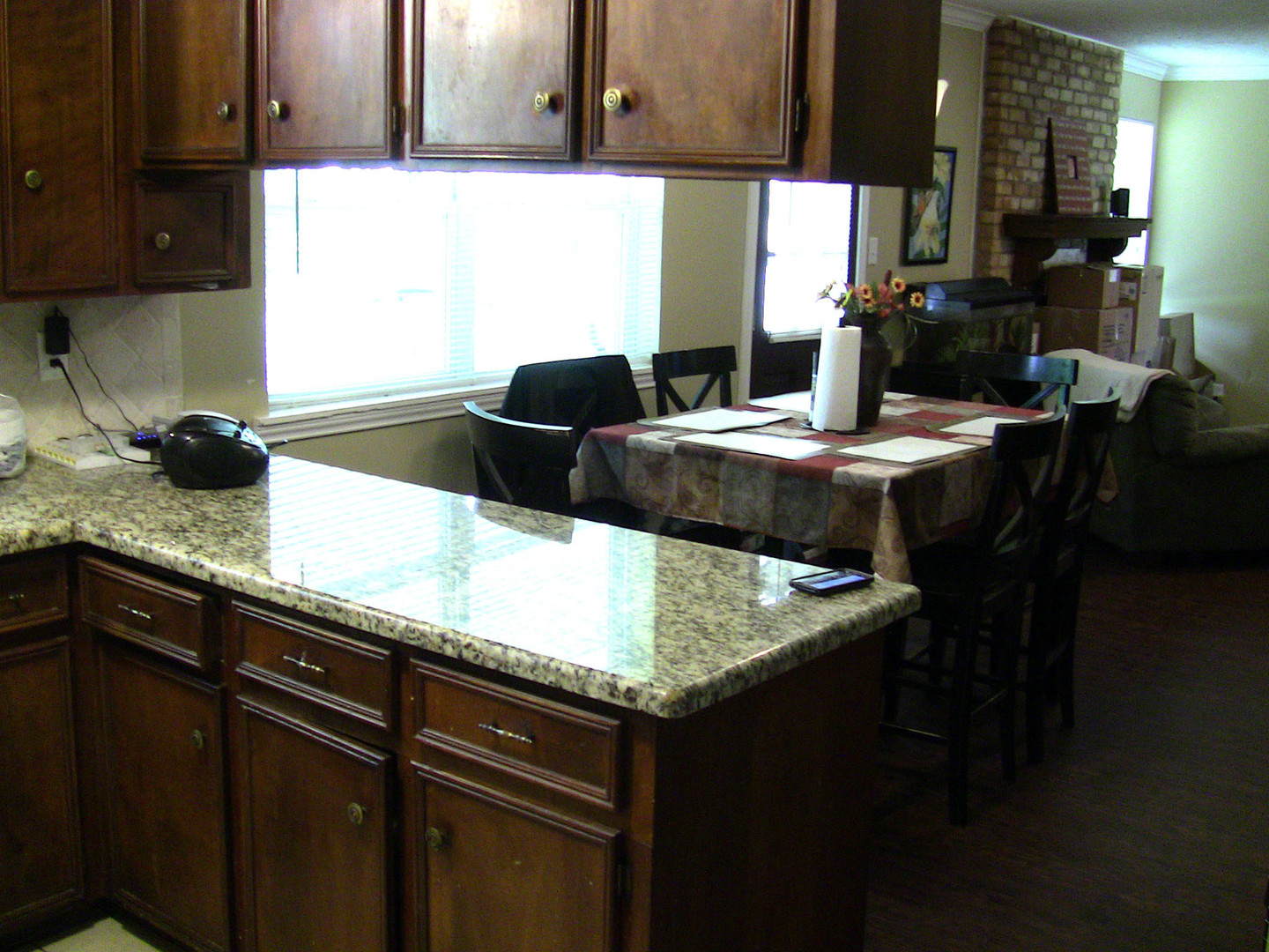 - Granite counters with a lot of cabinet space and pantry